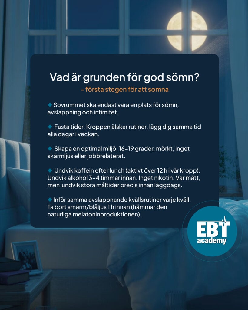 - Börja med grunden: sömnhygien och sovrumsmiljö.